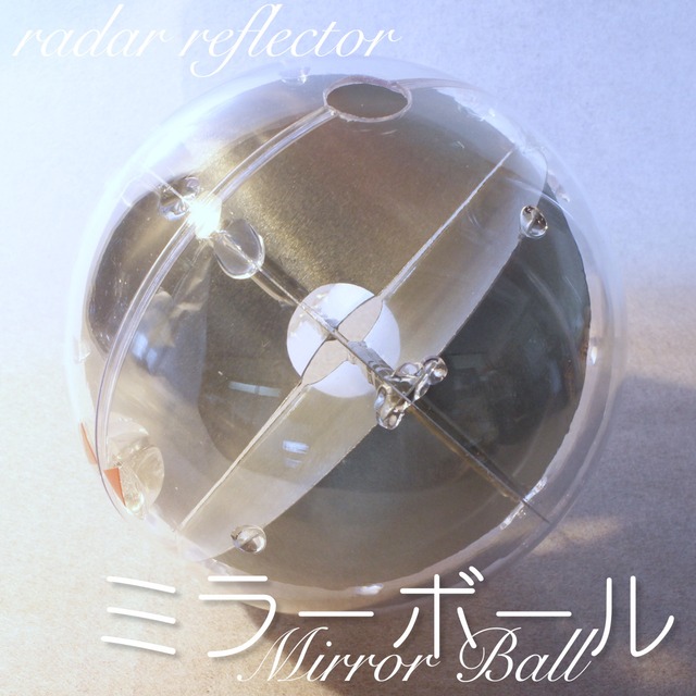 レーダーリフレクター 「ミラーボール」 レーダーリフレクターは船舶レーダーを反射する事で自船の位置を明らかにするための器具です。レーダー波を発射方向へ反射することで、設置したミニボート、カヤック等の小型船をレーダー画面上に表示させる効果があります。海上の交通が多い場所ではフラッグと共に自船に設置する事が推奨されています。 「ミラーボール」は、リフレクター本体を球形にデザインしてカップに収める事で風の抵抗を抑えています。 カップはマグネットジョイントです。フラッグポール等を本体で挟み込むようにセットします。(ポール直径10mm max)運用時には十分な強度があり、移動・保管時はポールから簡単に取り外せます。(収納バッグ付き) ポールがたわまない範囲で、なるべく高い位置に設置してください。 *性能は、海上保安庁が推奨している「見えなア缶」に準ずるものです。 *炎天下の車内等、温度の高い場所に長時間置かないでください。 *強い衝撃を与えないように注意してください。 *着脱時は、本体を両手で包み込むようにして引っ張ってください。こじると縁が割れることがあります。 *赤い△マークの部分がマグネットジョイントです。三角形の頂点部分を合わせるようにするとカップが合体するので、合体した本体を回しながら接続部分を指で押し、カップが乗り上げている部分がないかどうかよく確認してください。 *潮等で汚れた場合は、真水をかけて洗ってください。 *カップが傷ついても性能に変わりはありません。 本体材料:アルミ、アクリル、変性シリコン 本体重量:102g 付属品:耐候性ストッパー、収納バッグ